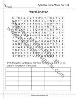 Syllables and Affixes Sort 49 Spelling Wordsearch